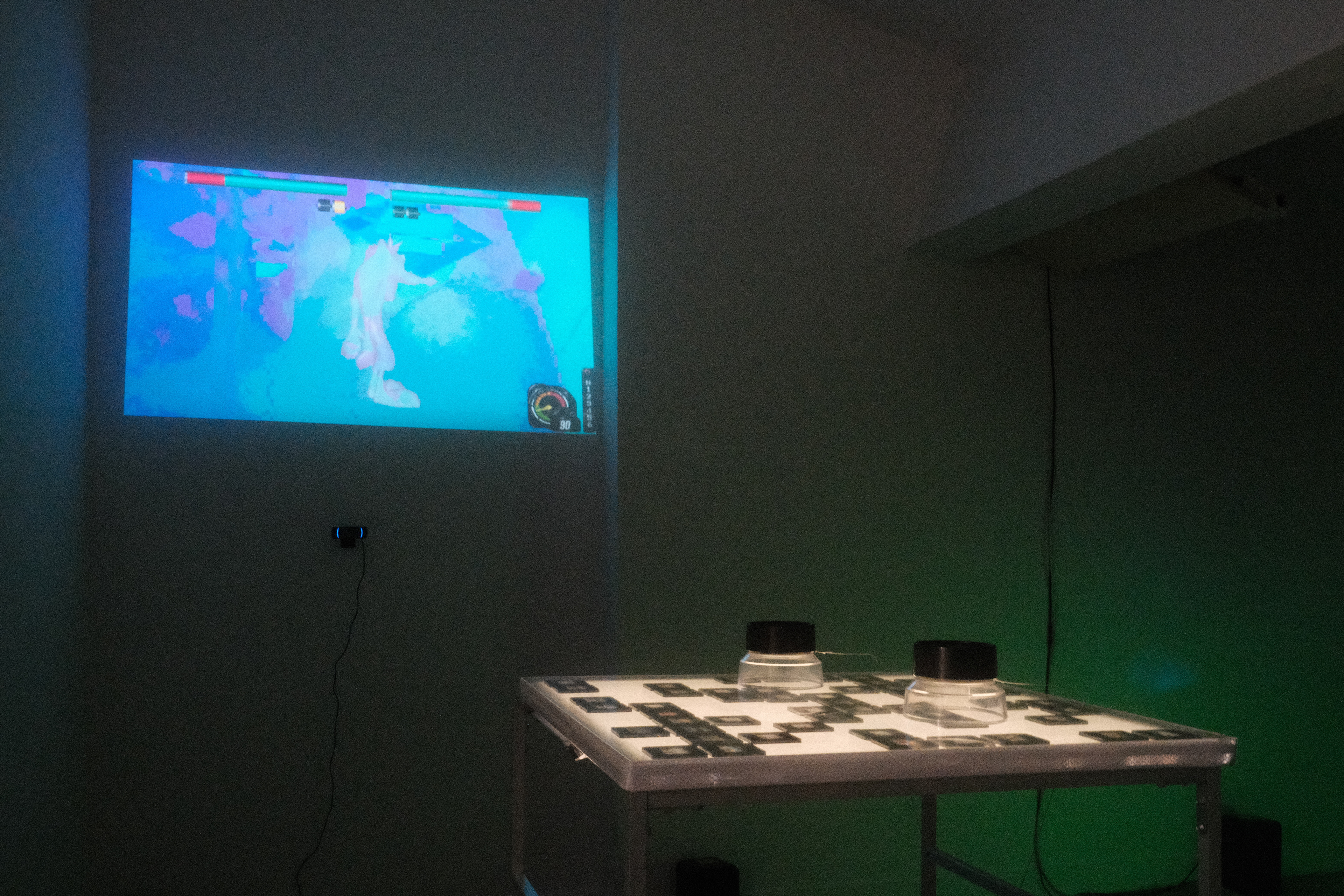 exposition à Exposition à TRANSMETTA (Bordeaux, France) qui réunit 4 artistes joueurs dans une exploration de leur imaginaire virtuel et collectif. 4 artistes don! les comportements vitaux se son! construit au rythme des évolutions technologiques : des Buzz MSN aux identifications lnstagram, des bacs a sable a !'intelligence artificielle, de la Nintendo DS a Fortnite. La première vie commence dans le corps, la deuxième vie est dans l'écran, la troisième se trouve entre les deux. Sur la moquette grise, les 4 artistes joueurs se son! réunis pour échanger et concevoir ces entre deux mondes. Une expérimentation nostalgique qui explore des techniques ultra moderne. Reconditionner les écrans, non pas comme des espaces d'individualisations psychologiques et de solitudes physiques, mais comme des vecteurs pour donner mémoire a d'autres artistes, reproduire des mémoires collectives, faire miroir et faire jeu. Prendre, télécharger, sampler, coder, plugger du réel, le transformer avec l'ordinateur, le traduire avec l'intelligence artificielle, le rematérialiser dans l'objet et le retransmettre aux autres. Autant de repères qui se redéfinissent a travers le travail des artistes. Quelle vie après la mort, quelle vie pendant les guerres, quels points de rencontre dans la dimension digitale et quels points de rencontre dans l'art? Entre troisième mort et troisième vie, se réunir ou se refugier dans la lumière bleue des écrans. Préserver les corps dans cette nostalgie contemporaine du être la.