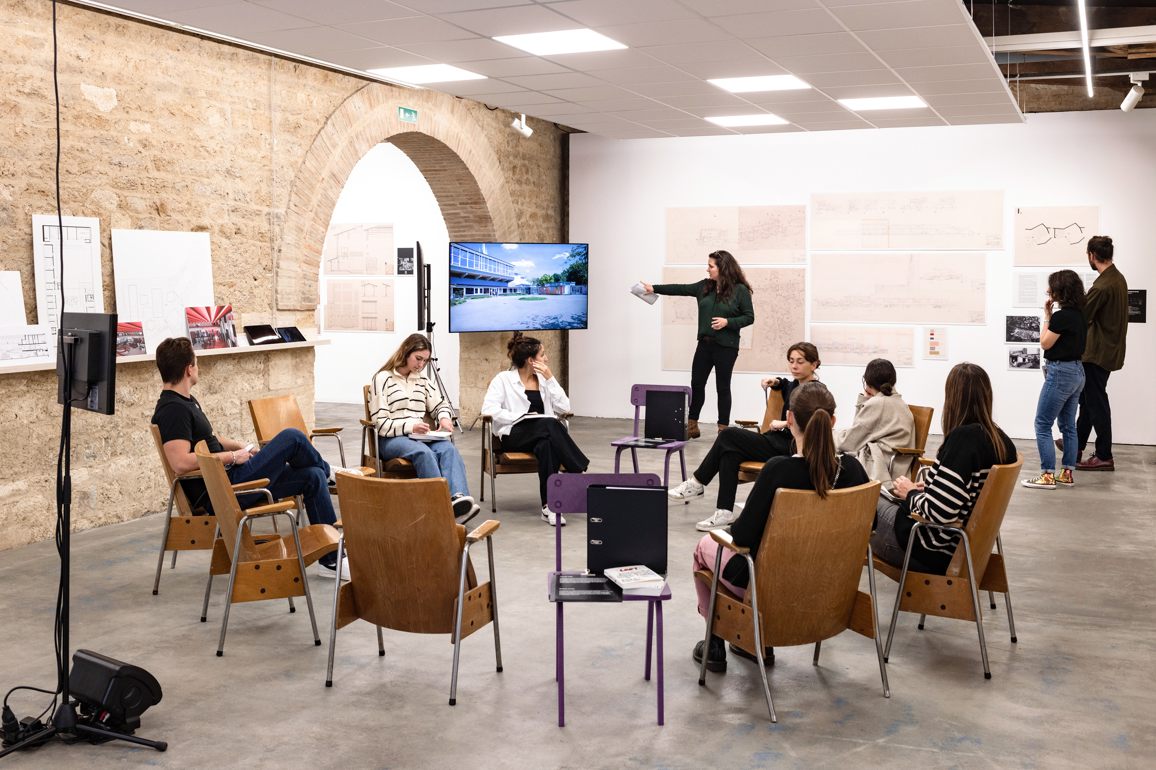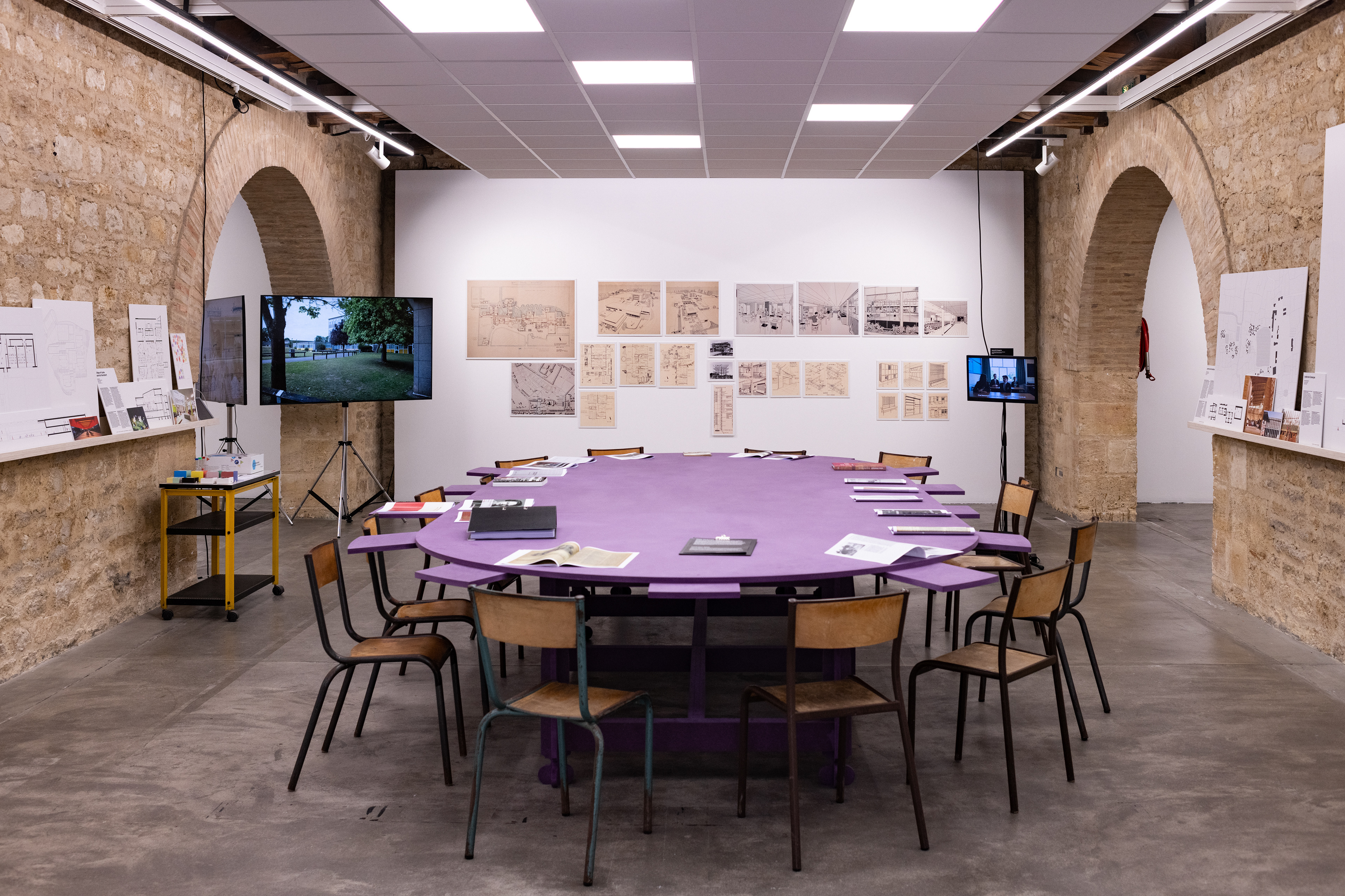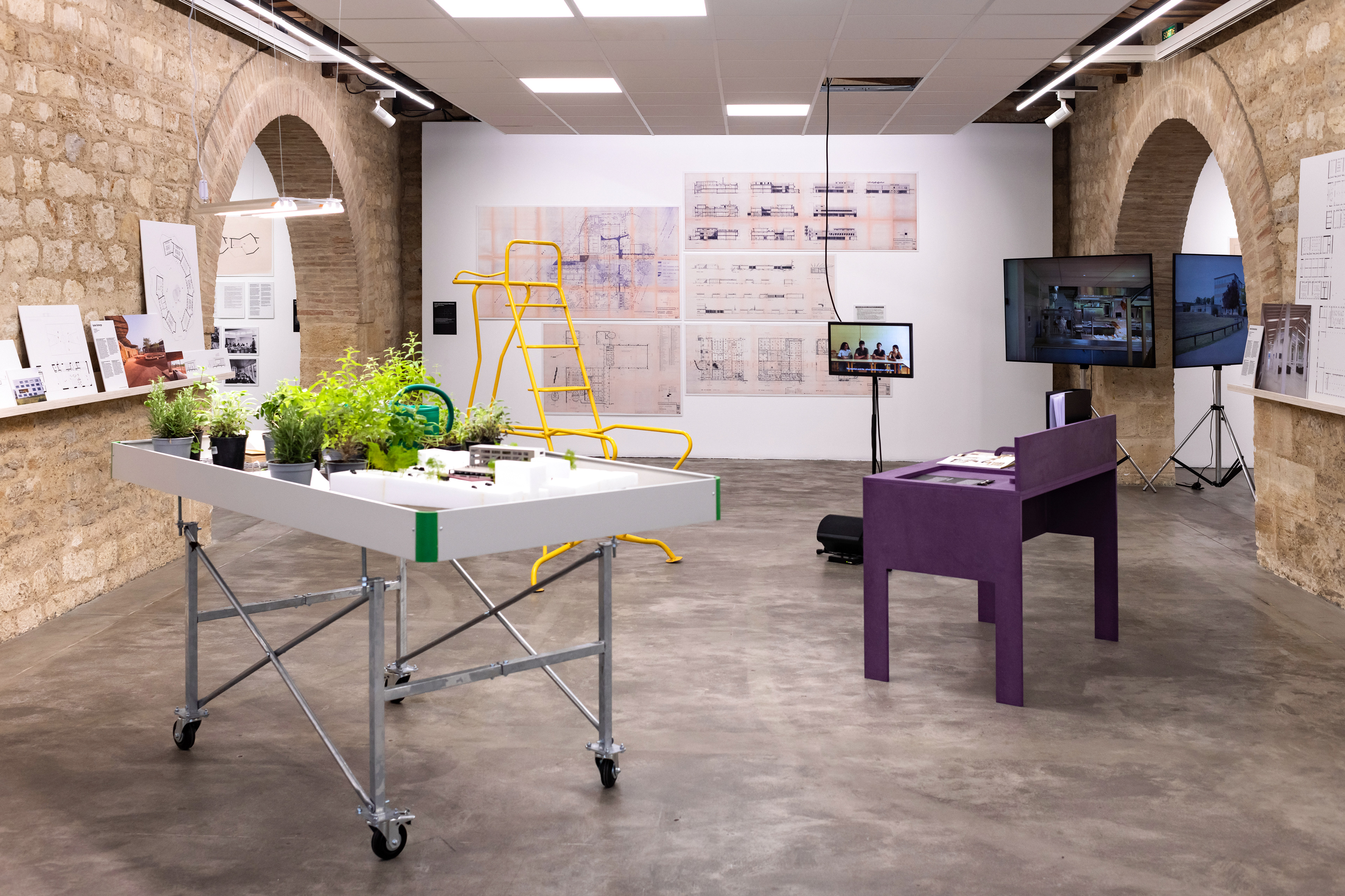 The exhibition is dedicated to secondary education spaces. The scenography is divided into five spaces, each focused on a specific subject and its associated school.